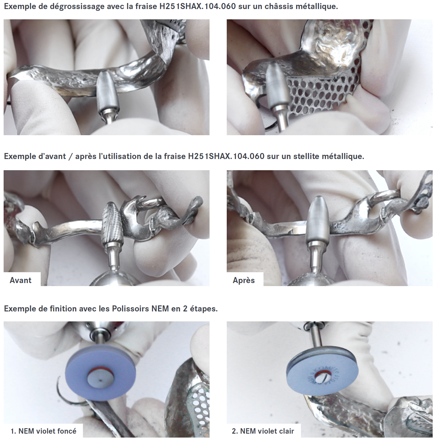 Fraise pour terminer le travail par les polissoirs NEM.
