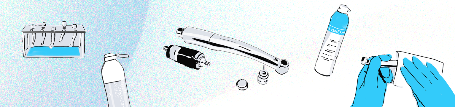 Un nettoyage minutieux des contre-angles, turbines et pièces à main, suivi d’une lubrification systématique et d’une stérilisation adaptée, est donc indispensable après chaque usage.