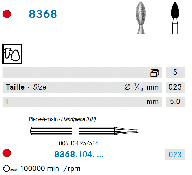 - Vitesse de rotation maximale : 100000 trs/mn