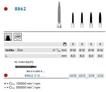 FRAISES DIAMANTÉES - 8862.314 (5) ISO 010 - 8 MM - 19 MM - FIN