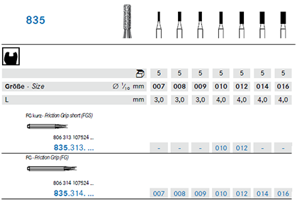DIAMANTBOREN - 835 314 - TURBINE FG STANDAARD - 007 - BLISTER VAN 5 INSTRUMENTEN