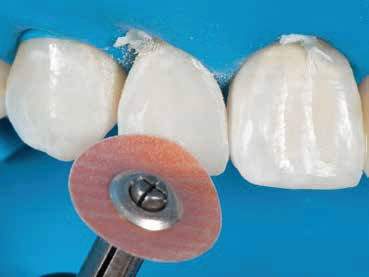 Het polijstproces begint met de incisale rand, die wordt gepolijst met een 3M™ Sof-Lex™ XT Disc. Vervolgens worden de mesiale en distale embrasures opnieuw gedefinieerd met Sof-lex discs.