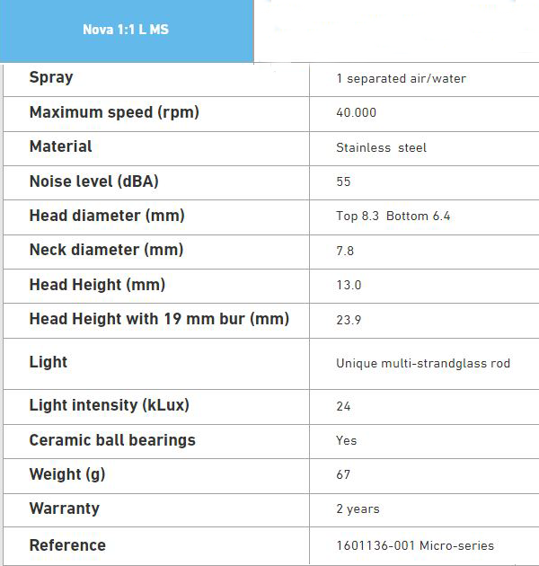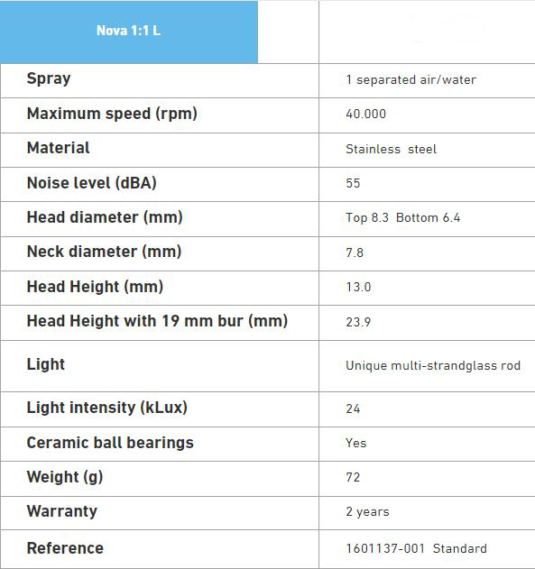 De NOVA 1:1L, met zijn ultraslanke kop en lichaam, geeft de behandelaar een veel duidelijker gezichtsveld en vereenvoudigde toegang tot de achterkant van de mondholte.